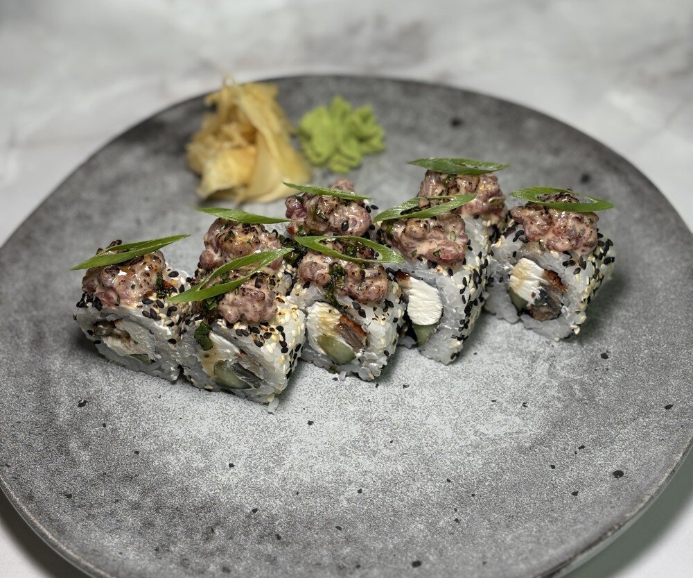 Это сочетание нежного угря, стриплойна, сливочного сыра и свежего огурца, завёрнутых в ароматный рис. Попробуйте это блюдо из категории роллы и насладитесь его богатым вкусом